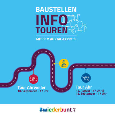 09.08.2024 Kostenlose Baustellen-Info-Touren mit dem Ahrtal-Express09.08.2024Gäste und Einheimische erkunden auf zwei Routen den Wiederaufbau aus einer anderen PerspektiveMehr lesen